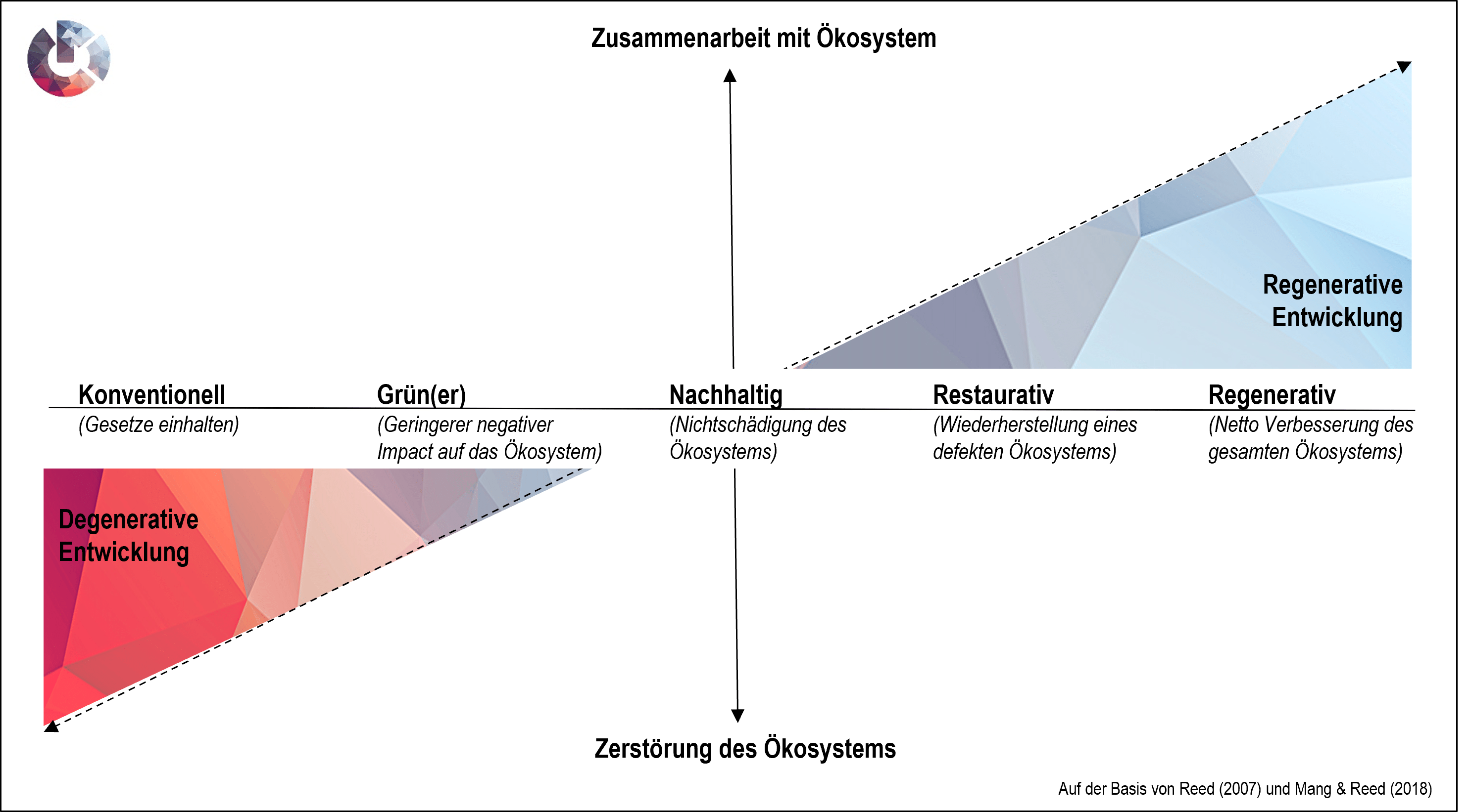 In Wissenschaft und Praxis steht daher einer Paradigmenwechsel an. Die Regenerationsbewegung fordert: Nachhaltigkeit ist nicht ausreichend; die Bewahrung des Zustands der Erde auf dem derzeitigen Niveau ist vor dem Hintergrund bereits überschrittener planetarer Grenzen nicht genug. Stattdessen muss unser Wirtschaftssystem so ungestaltet werden, dass die Wirtschaft als Ganzes „mehr zurückgibt als sie nimmt“, indem sie Unternehmen und Institutionen aufbaut, die Voraussetzungen für die Wiederherstellung und das Gedeihen des Lebens schaffen („die richtigen Dinge tun“). Klar ist: Die Zukunft erfolgreichen menschlichen Lebens in Wohlstand auf unserem Planeten wird wesentlich von der Regeneration natürlicher Ressourcen und der Gestaltung widerstandsfähiger natürlicher, aber auch sozialer Systeme abhängen. Gleichzeitig muss Natur überall dort erhalten werden, wo die biologische Vielfalt noch intakt ist.