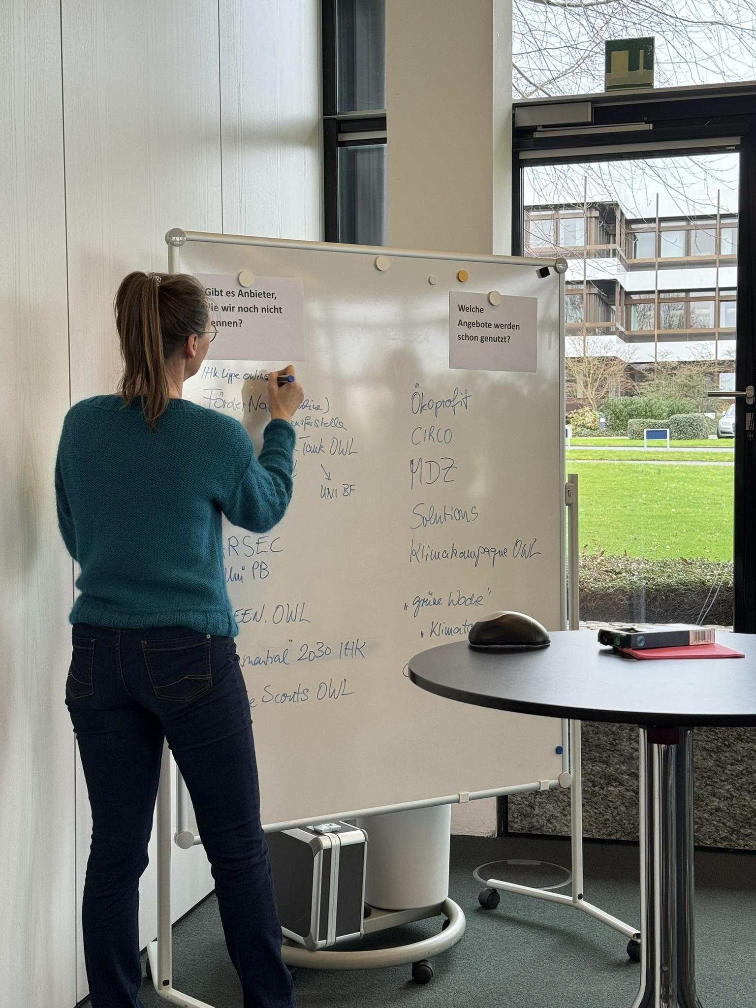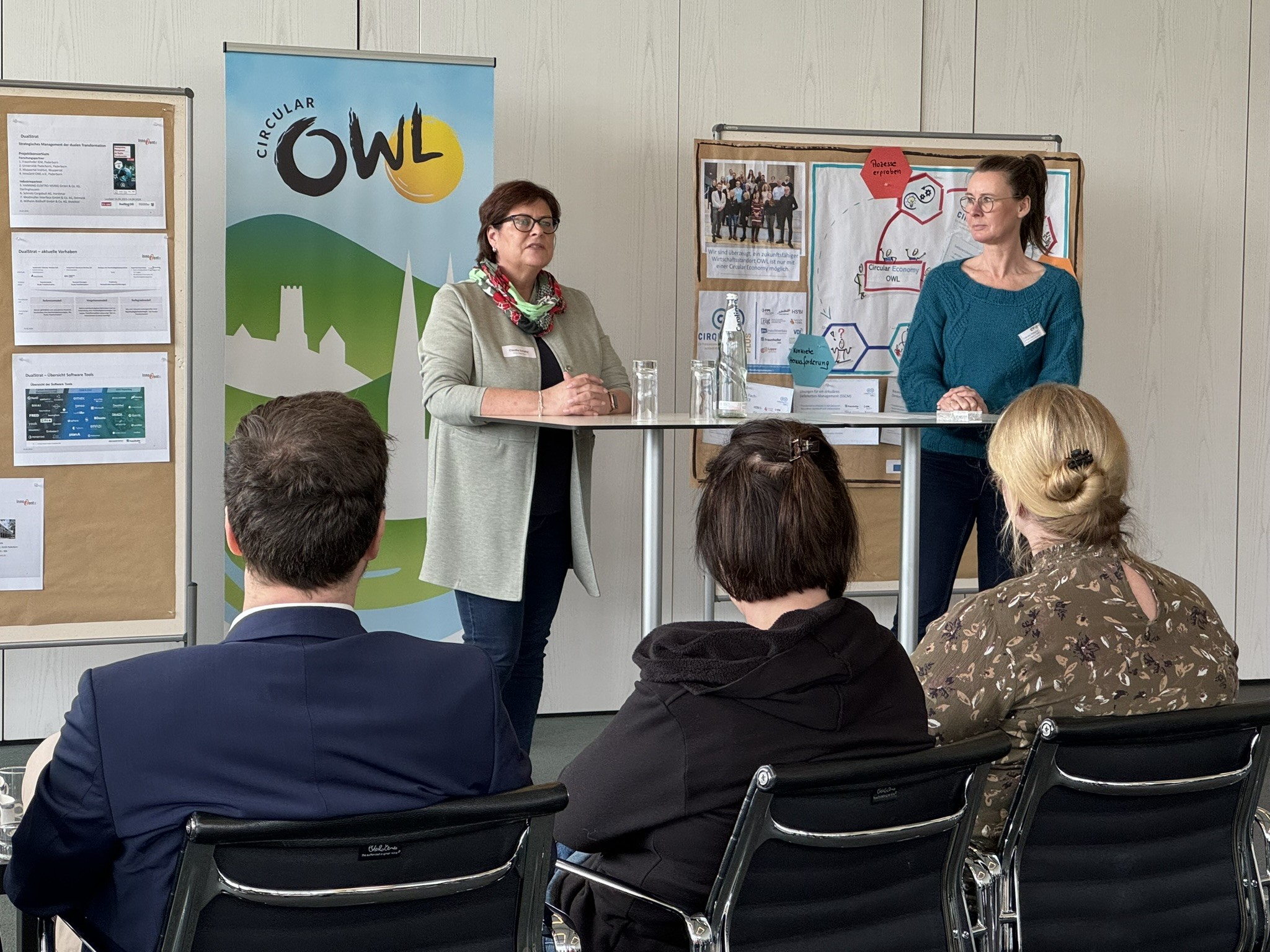 In kompakten Kurzbeiträgen stellten dann die EffizienzAgentur NRW (Anja Vogel, Ines Hayden und Gabriele Passgang), InnozentOWL (Ulrike Künnemann), CirQualityOWL plus (Friederike David) und Ökoprofit (Claudia Schäfer) bereits vorhandene Angebote zu diesen Fragen vor und Peter Brünler (ProWirtschaft GT) berichtete aus seinen Erfahrungen mit der Nutzung.