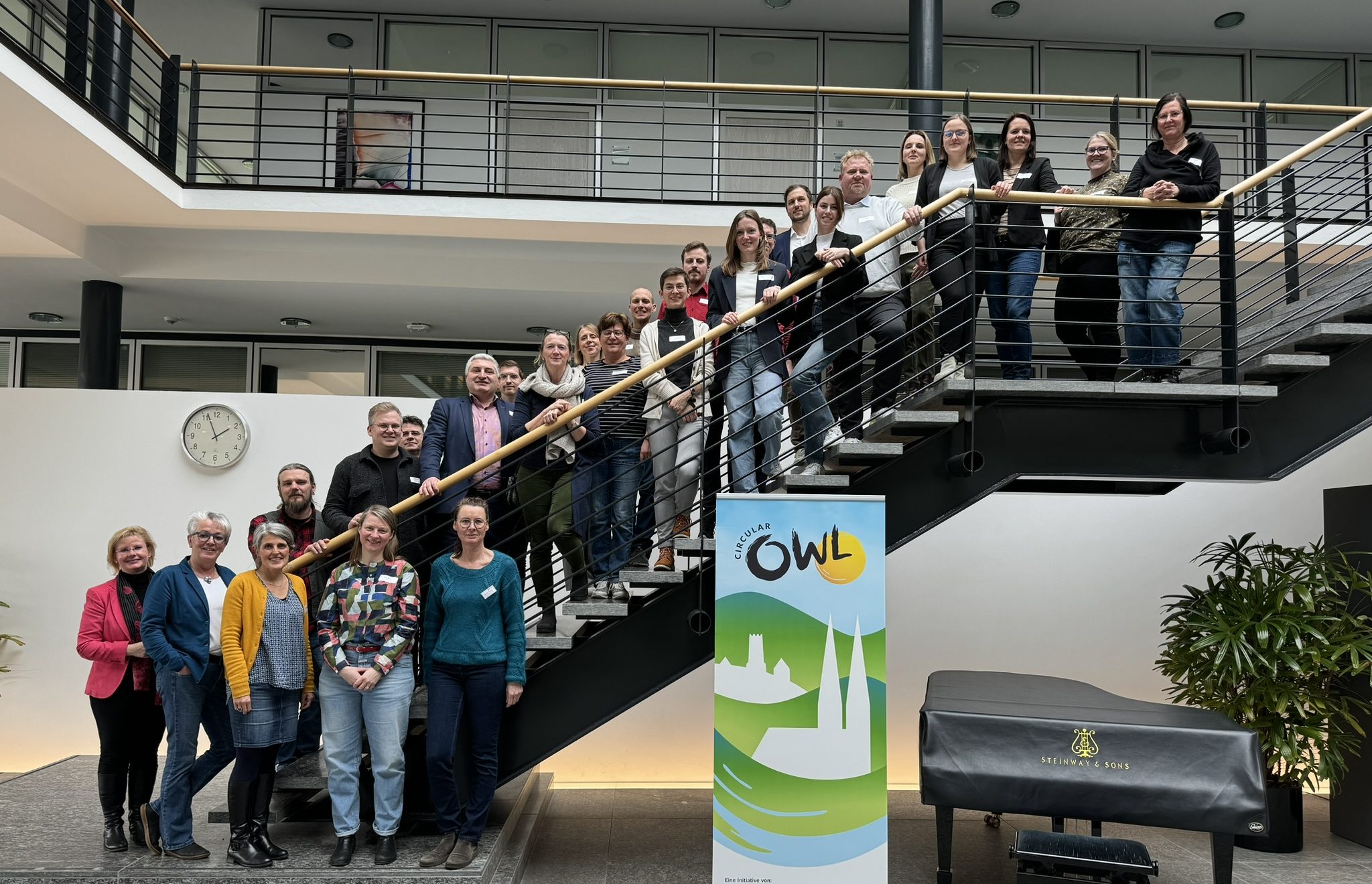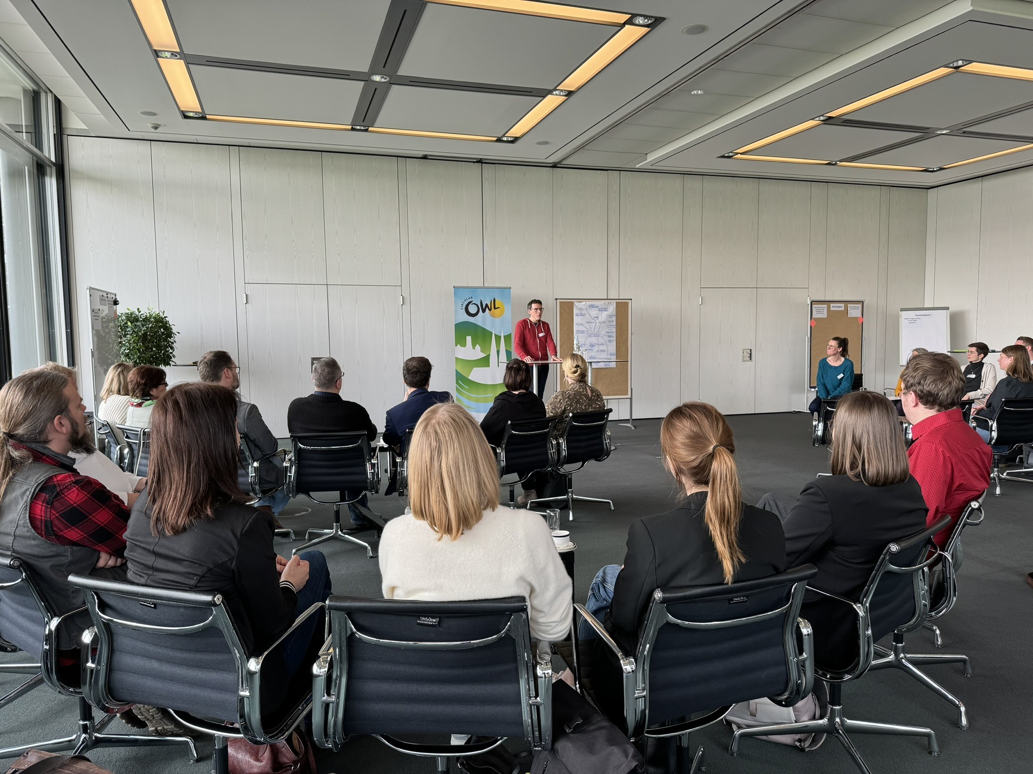 Am 26. Februar 2024 hatte CircularOWL zum Erfahrungsaustausch „Nachhaltige Transformation“ in die Räume der Bertelsmann Stiftung eingeladen und rund 35 Vertreter:innen von Wirtschaftsförderungen aus OWL sind der Einladung gefolgt.